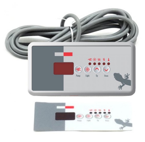 | Knoppen configuratie | 4 knoppen: Sticker 1:Jets, Light, Up, Down Sticker 2: Jets, Blower, Light, Temp Sticker 3:Jets1, Jets2, Light, Temp |